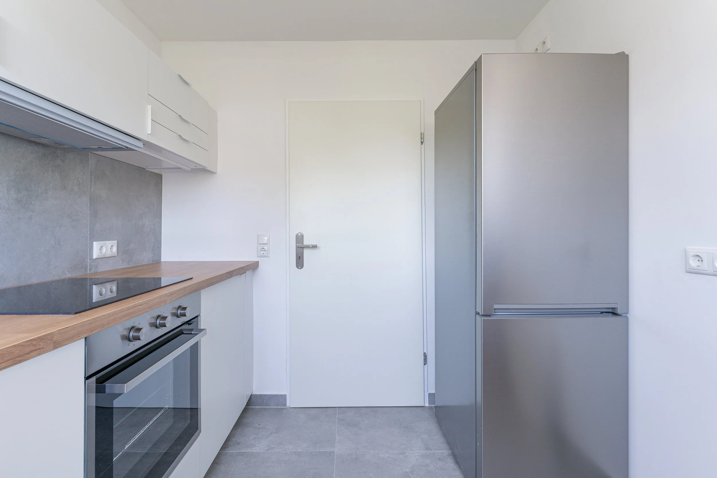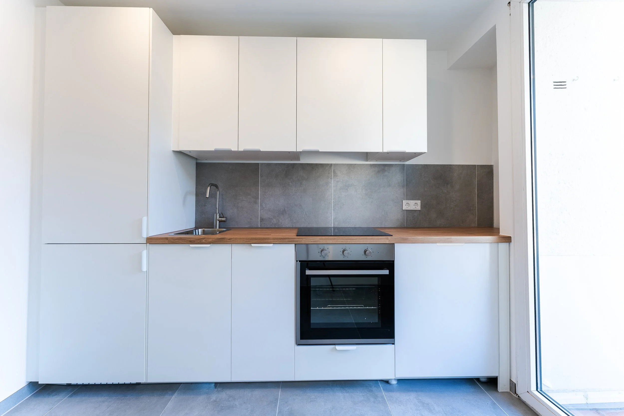 Alle Einbauküchen beinhalten Kühl- und Gefrierschrank, Herd- und Backofen, Dunstabzugshaube, Waschmaschine und Trockner sowie eine Spülmaschine.